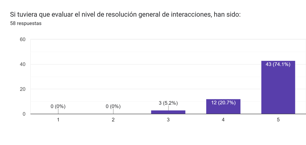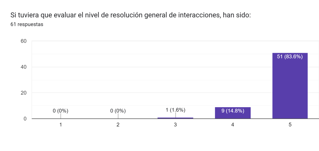 Los resultados reflejan un alto nivel de satisfacción, con la mayoría de las respuestas ubicadas entre el 70% y el 100% en la escala de Likert, donde 5 representa la máxima puntuación.