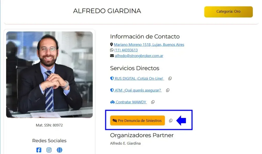 En caso de que el cliente lo prefiera, en la misma sección, tiene los enlaces para realizar la denuncia directa en la compañía aseguradora, lo cual agiliza aún más el proceso para aquellos clientes que quieran tener la autonomía inmediata para iniciar el trámite.