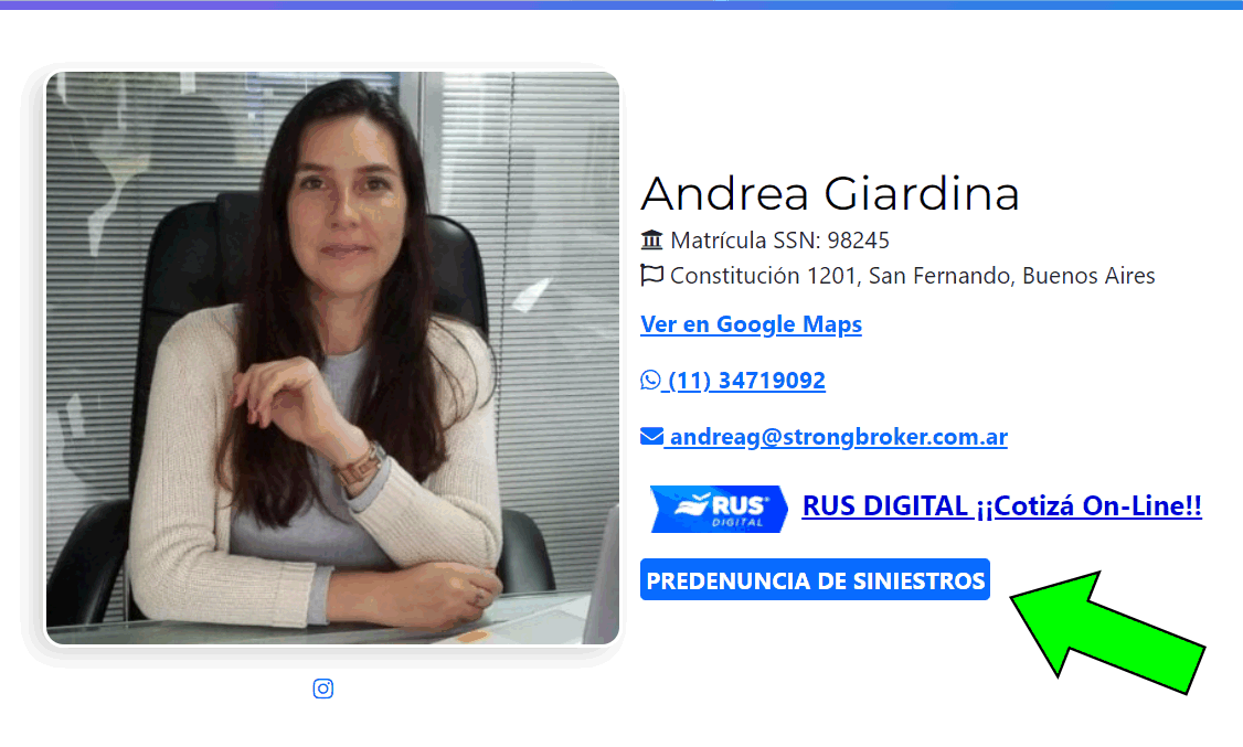 Este enlace personalizado también está disponible en la Landing page de cada PAS, visible como un botón de PREDENUNCIA DE SINIESTROS, para que sus clientes accedan fácilmente cuando lo necesiten.