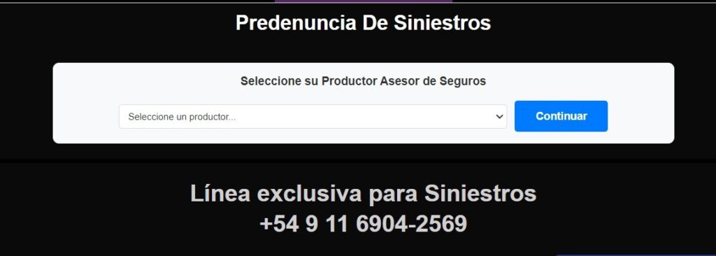Para los asegurados que ingresen directamente al sitio de siniestros sin utilizar el enlace proporcionado, hemos agregado una función que les permite seleccionar a su Productor Asesor de un menú desplegable. Así, podrán identificar rápidamente a su PAS y continuar con el proceso de predenuncia de forma ágil.
