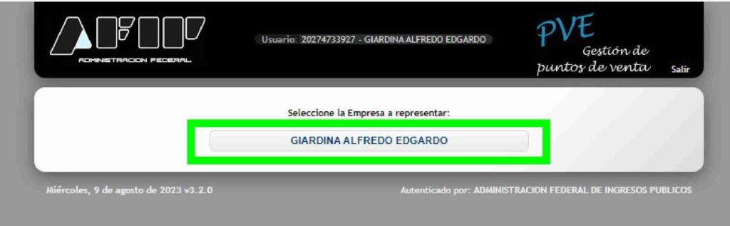 h- Seleccionan la “empresa a representar” (ustedes mismos)