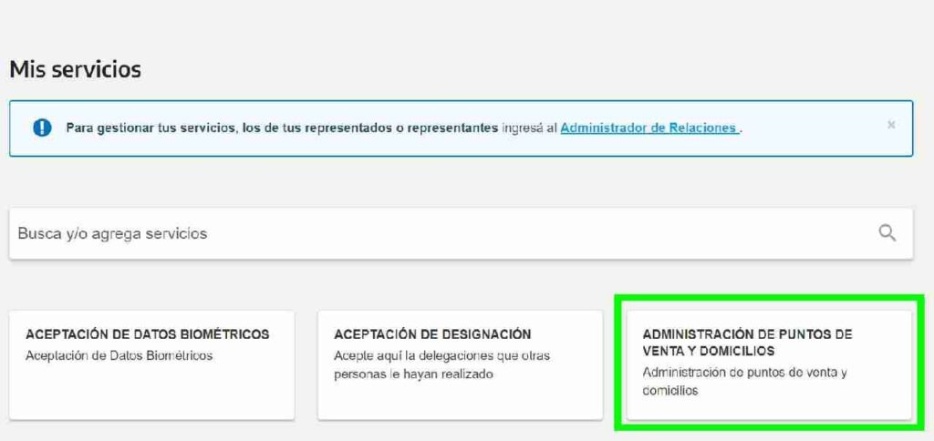 b- Como primer paso, deben agregar el servicio Administración de Puntos de Venta y Domicilios.