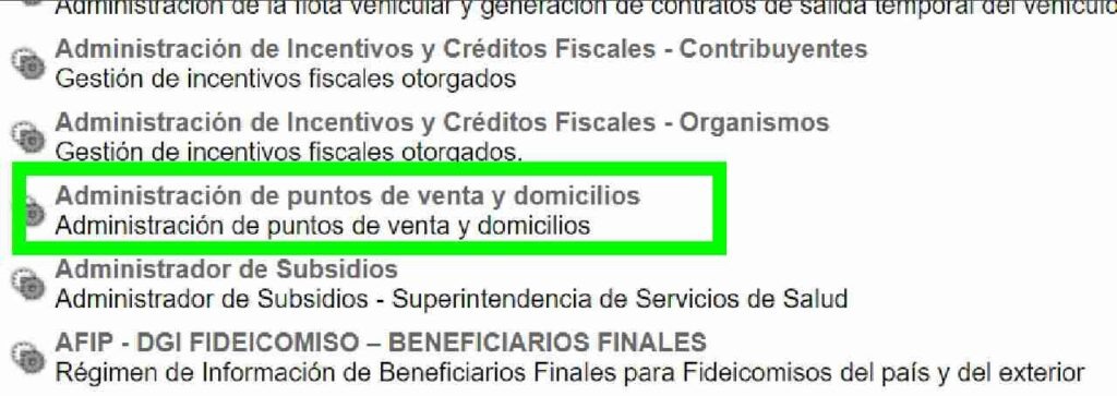 g- En el cuadro, tipean Administración de puntos de venta, y cuando aparece en el desplegable, seleccionan la opción
