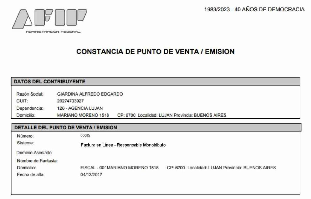 Tener en cuenta que el nombre de fantasía es el nombre del comercio que aparece en la factura. Los PAS, en gral., colocamos ahí nuestro nombre propio.